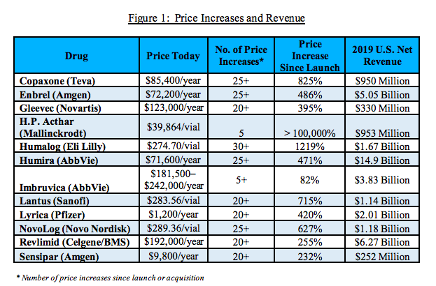 A 2021 report from the Congressional Committee on Oversight and Reform called out Enbrel (a drug for rheumatoid arthritis) for increasing their price more than 25 times since its initial market launch.